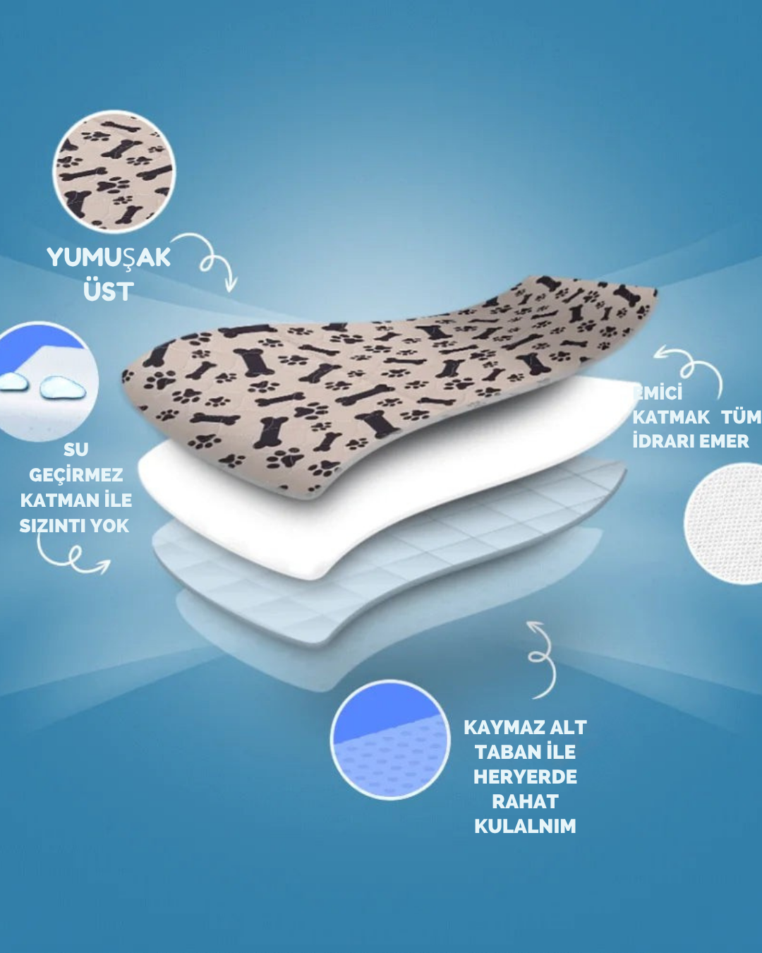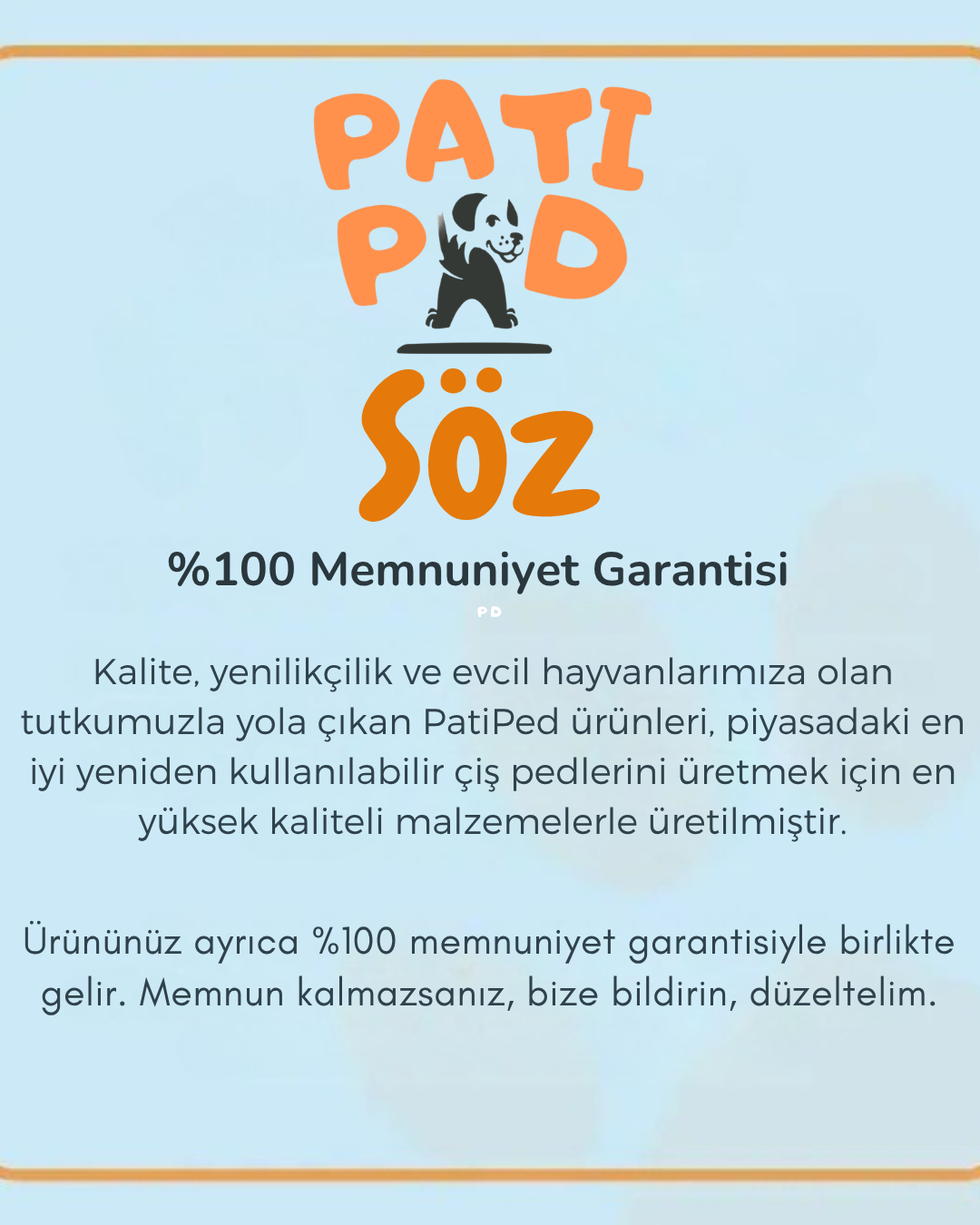 Geleneksel tek kullanımlık pedler kullanışlı görünebilir, ancak kolayca yırtılabilir, dağınıklık yaratabilir ve hoş olmayan kokular yayabilir. Daha da kötüsü, tek kullanımlık pedler genellikle Polimerik Hidrojel gibi sadece dağınıklığa neden olmayan, aynı zamanda köpeğinize ve ev ortamınıza zarar verebilecek kimyasallar içerir. PuppyPad ise sızıntıları önlemek ve kokuları hapsetmek için birlikte çalışan dört dayanıklı katmandan oluşuyor. Toksik olmayan malzemelerden üretilen bu ürün, güvenli, rahat ve hatta köpeğinizin ilgisini doğal olarak çekmek için feromonlarla zenginleştirilmiştir.